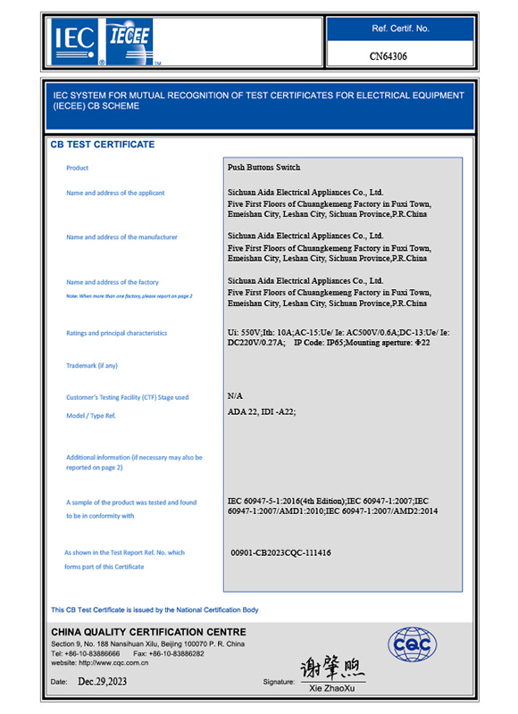 按钮IEC证书