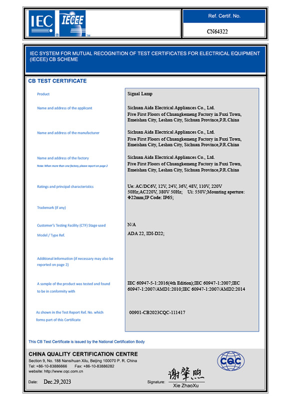 金属信号灯IEC证书